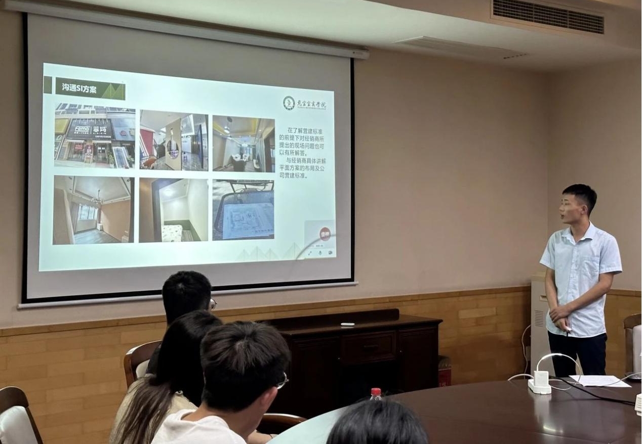 研修成果汇报、实习业绩分享、专业技能答辩、企业导师点评......7月21日,建筑艺术系17装饰技师班的5位学子在顶岗实习满1年后,迎来了他们在德华兔宝宝装饰新材有限公司的“转正大考”。