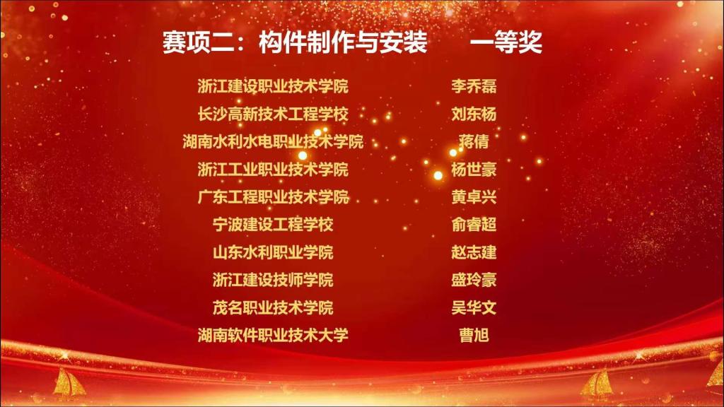本次大赛自启动以来,受到全国土建类院校师生的积极关注,广泛参与,赛项一“构件深化设计”有159支队伍参赛,赛项二“构件制作与安装”有185支队伍参赛,其中不乏来自全国的高职院校、职教本科院校。经过激烈角逐,我院建筑工程系19建筑施工高技2班刘宁杰同学代表浙江省获得赛项一“构件深化设计”冠军,19建筑施工高技2班盛玲豪同学代表浙江省获得赛项二“构件制作与安装”一等奖。