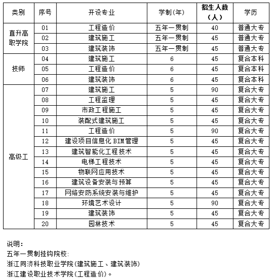 3)高级工(技师)复合的成人大专(本科)学历需参加成人高考,合作学院有浙江建设职业技术学院等,学费另收。