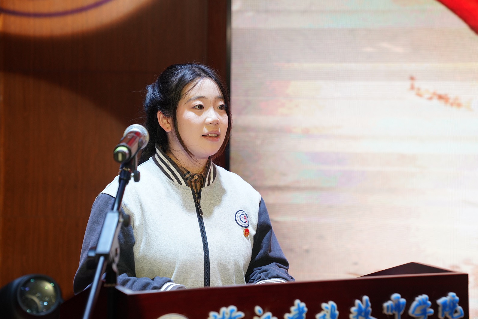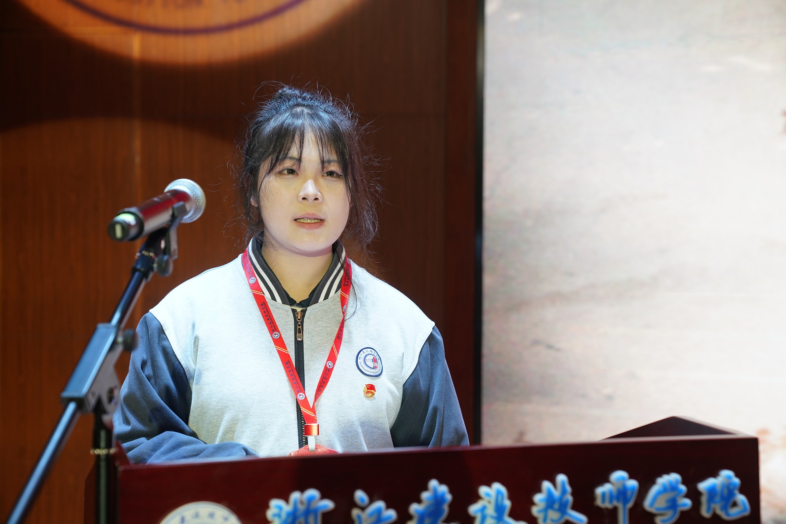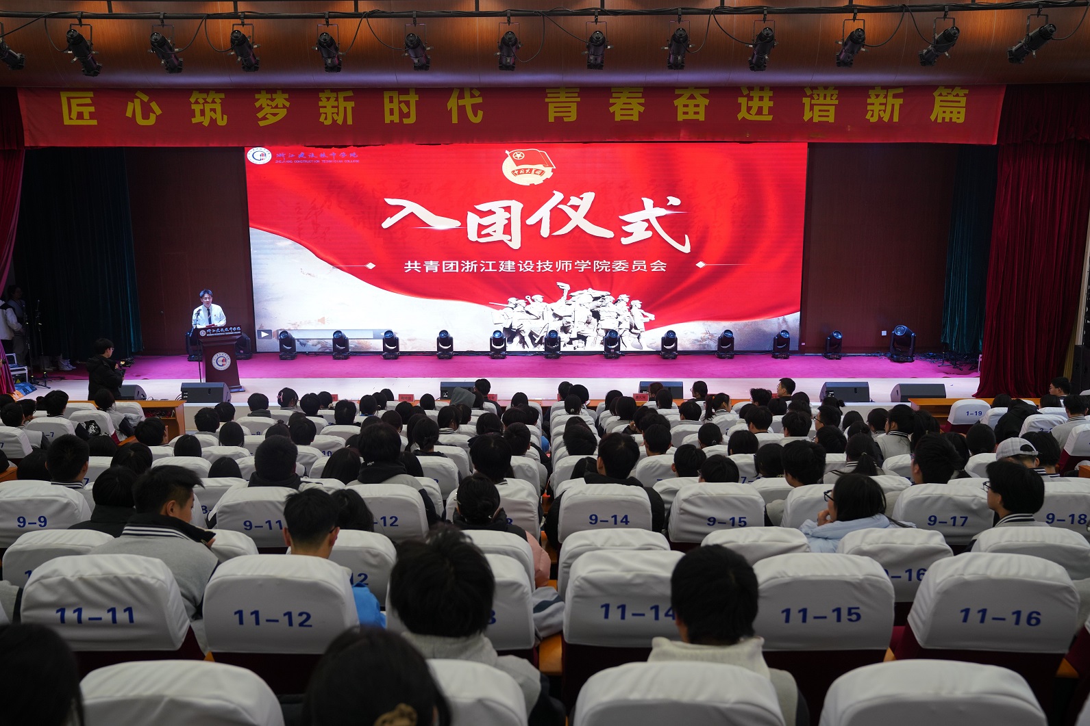 新团员代表缪欣奕同学上台发言,她表示,加入中国共产主义青年团,对于每一位浙江建设技师学院的学子来说,不仅是荣誉的象征,更是责任与担当的开始。接下来,将以更加饱满的热情投入到学习与实践中去。在学院这片技能成才的沃土上,继续刻苦钻研专业知识,精益求精,不断提升自身的专业技能和综合素质,同时,在学生组织队伍中传递正能量,展现新时代青年的风采。