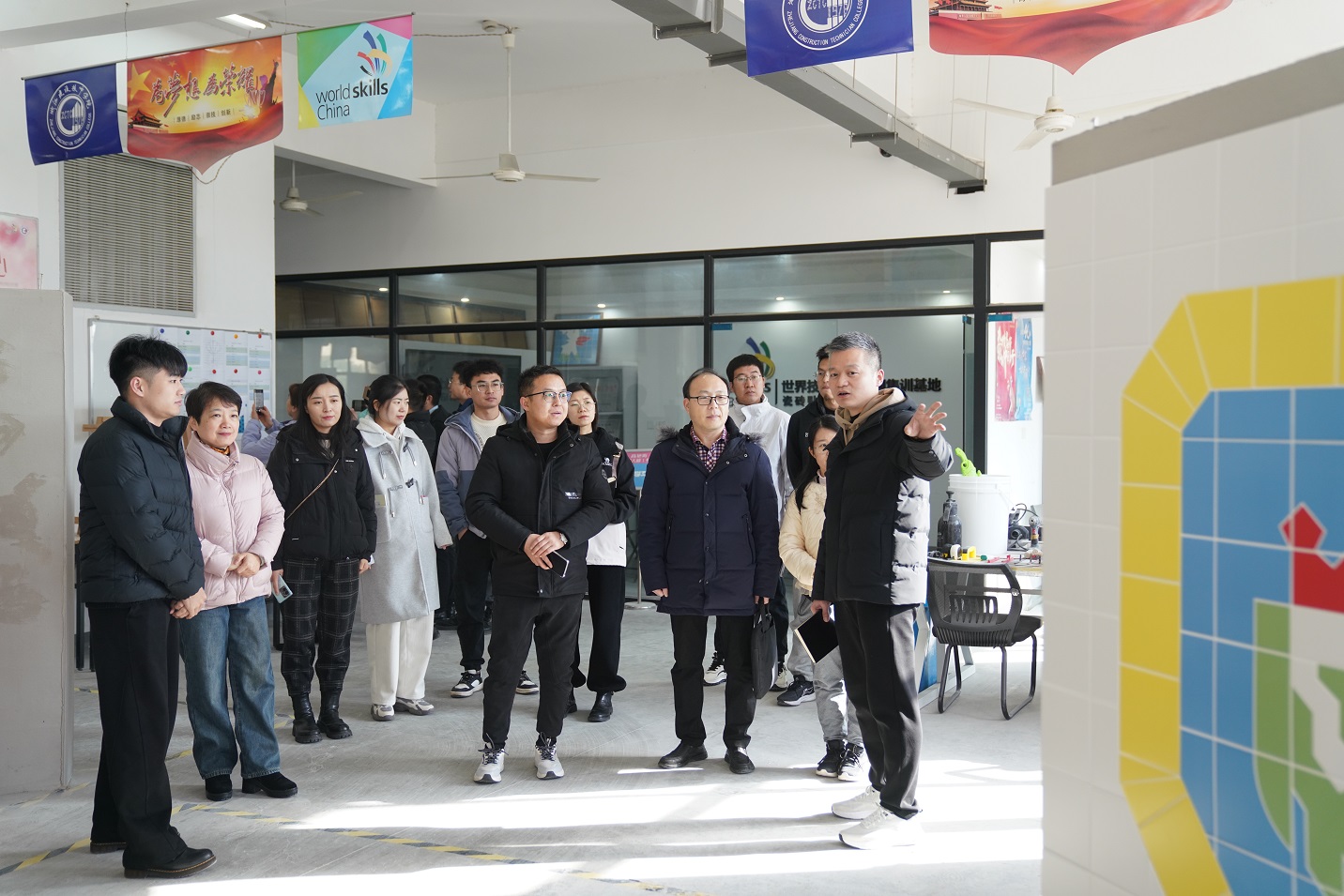 在学院领导的陪同下,卢永平副院长一行先后参观了学院瓷砖贴面项目、抹灰与隔墙系统项目、混凝土建筑项目世界技能大赛中国集训基地及砌筑项目、园艺项目实训基地,对学院的专业特色、基地建设和各项目竞赛佳绩、比赛规则、选手选拔等方面进行了详细了解