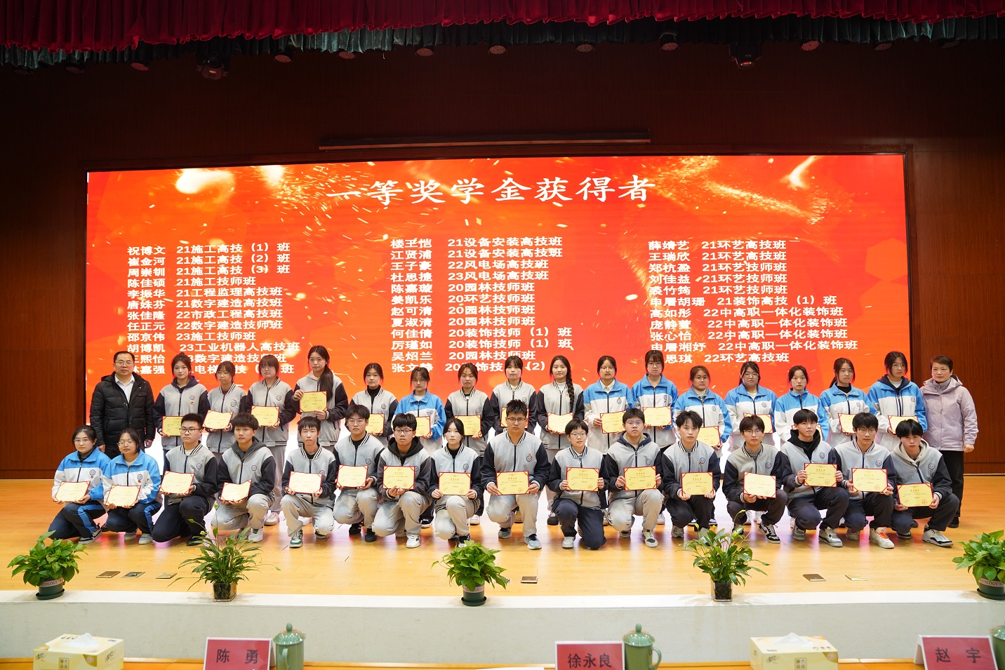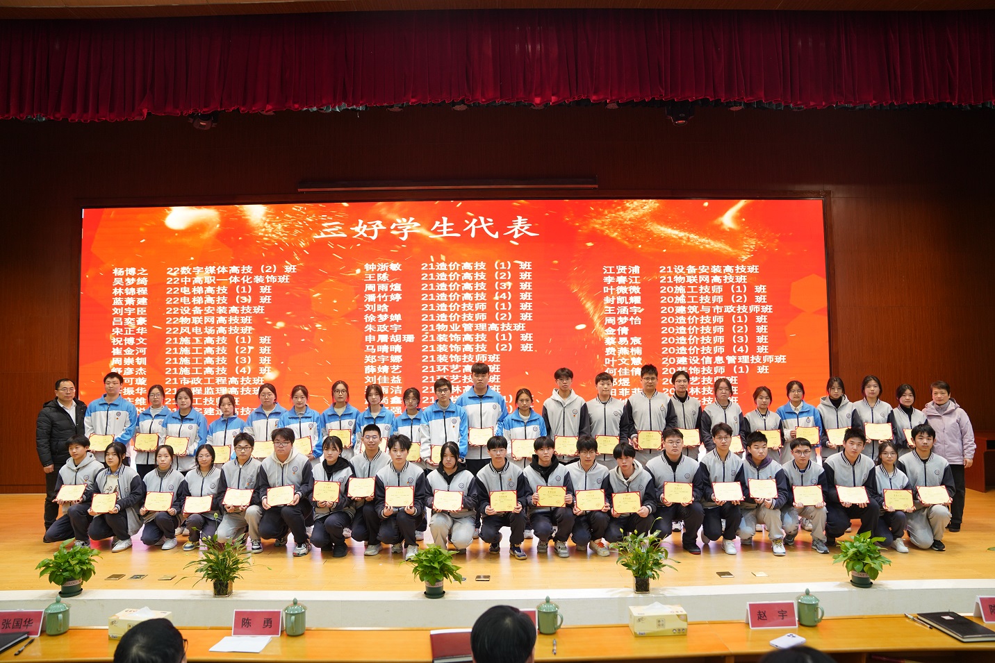 大会中,张国华副院长宣读学院国家奖学金、省政府奖学金、学院励志奖学金、一等奖学金获得者及三好学生表彰文件,并希望全体学生以先进为榜样,刻苦学习、钻研技能、全面发展,努力成长为全面建设社会主义现代化国家的高素质技术技能人才,为学院建设“一流技师学院”作出积极贡献。