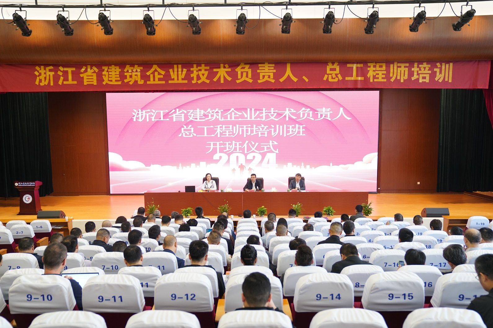 10 月 10 日至11日,浙江省建筑企业技术负责人、总工程师培训班在浙江建设技师学院富阳校区举行。本次培训班由浙江省工程建设质量管理协会主办,我院承办,培训对象为全省建筑企业技术骨干人才,培训人数共计百余人。省工程质量协会副会长常德强、学院党委书记徐永良、省工程质量协会副秘书长朱闻静出席开班仪式。