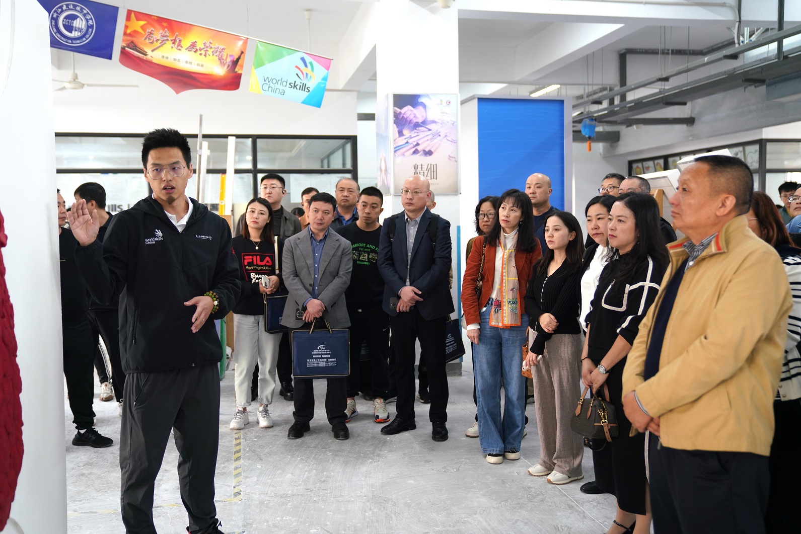 在徐永良书记的带领下,杜红林处长一行参观了学院各世赛项目集训基地,详细了解学院专业特色和项目工艺工法、竞赛规则、梯队建设等情况。
