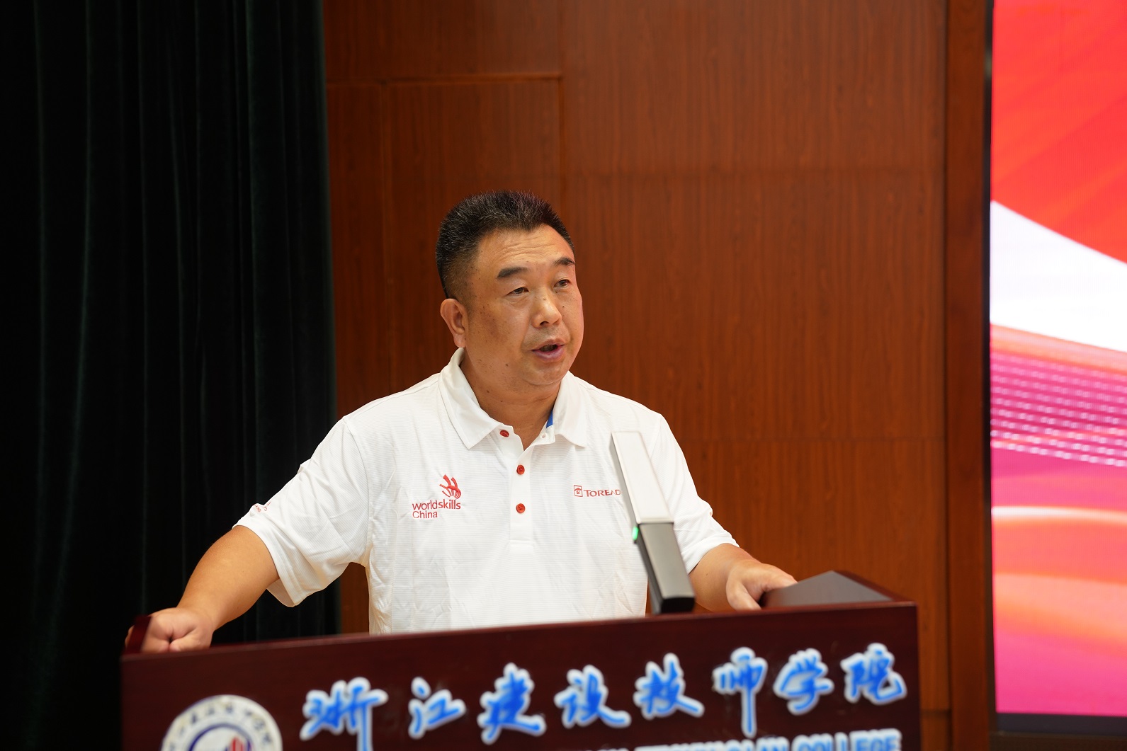 学院党委书记徐永良在致辞中向两位选手、专家教练和保障团队表示崇高的敬意,向省人社厅和省机电集团长久以来的关心支持致以诚挚的谢意。