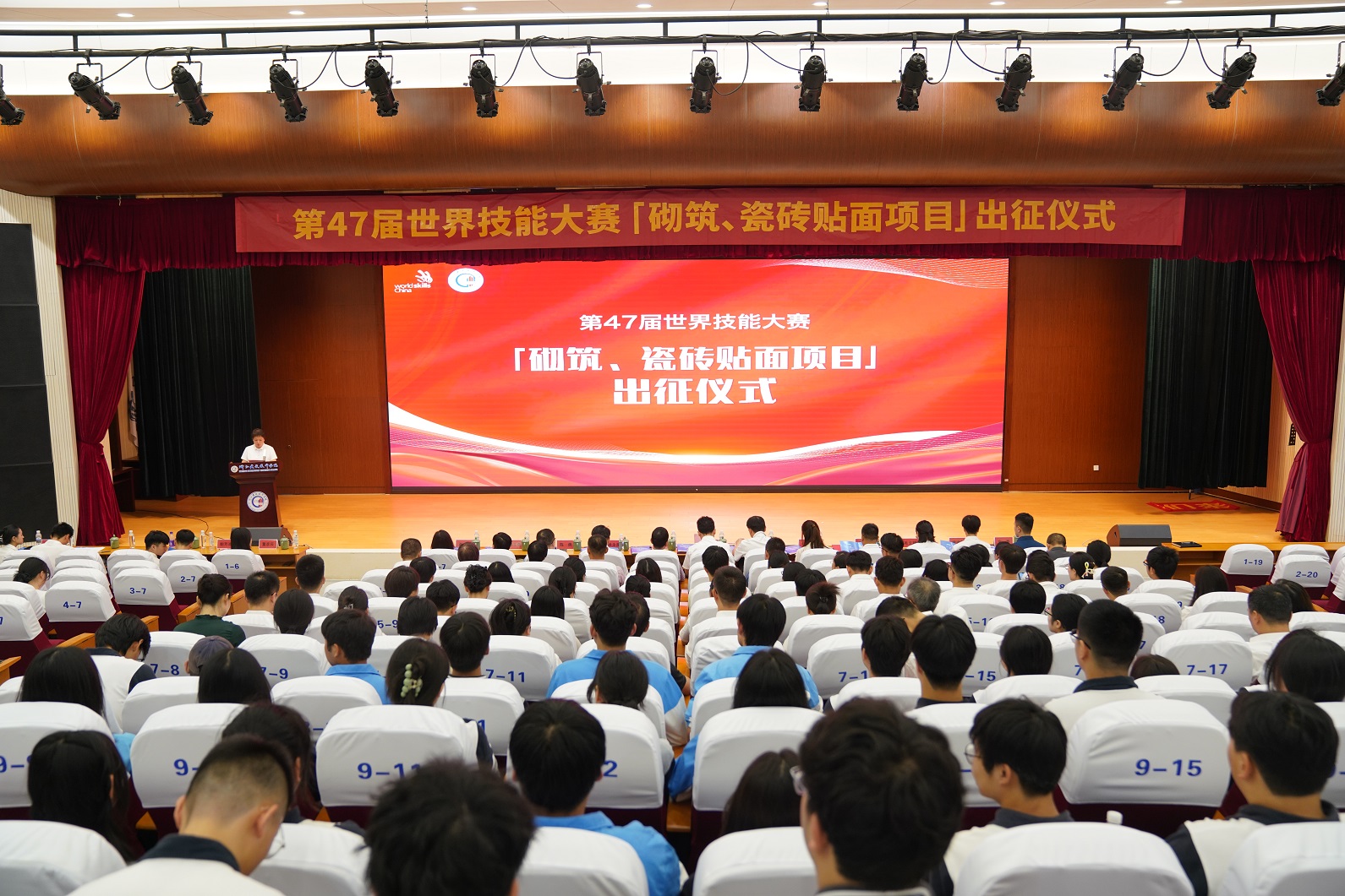 战鼓声声催奋进,旌旗猎猎踏征程。8月29日上午,浙江建设技师学院报告厅内“战鼓擂动”,为即将代表我国出征第47届世界技能大赛的砌筑、瓷砖贴面两个项目的选手和专家教练团队加油鼓劲,激励选手们再接再厉、坚定信念。浙江省机电集团副总经理刘强,浙江省人社厅职业能力建设处处长陈华良、副处长林琳,学院世赛十年征程的开拓者和领航人、学院领导钱正海,学院两级领导班子成员出席活动。学院世赛专家组成员、选手、师生代表参加活动。