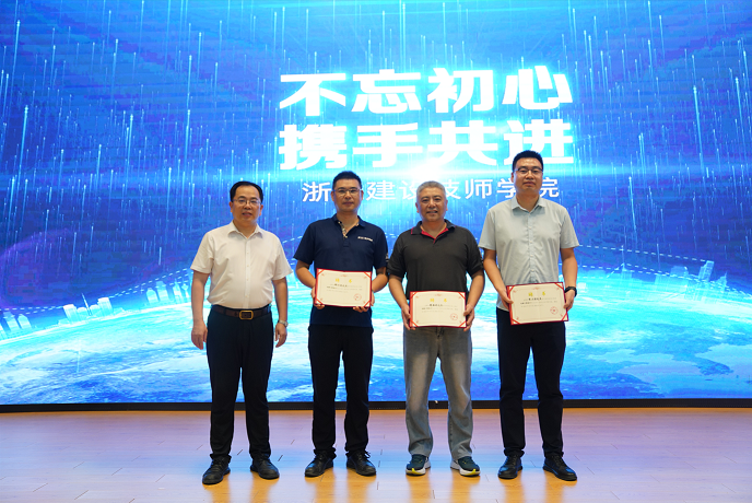 同时,张国华副院长向来自迅达、西子和力石的3位资深技术骨干颁发了电梯工程技术工学一体化企业考核专家聘书,旨在进一步加深校企沟通交流,保障学院工学一体化课程考核紧贴企业岗位标准。