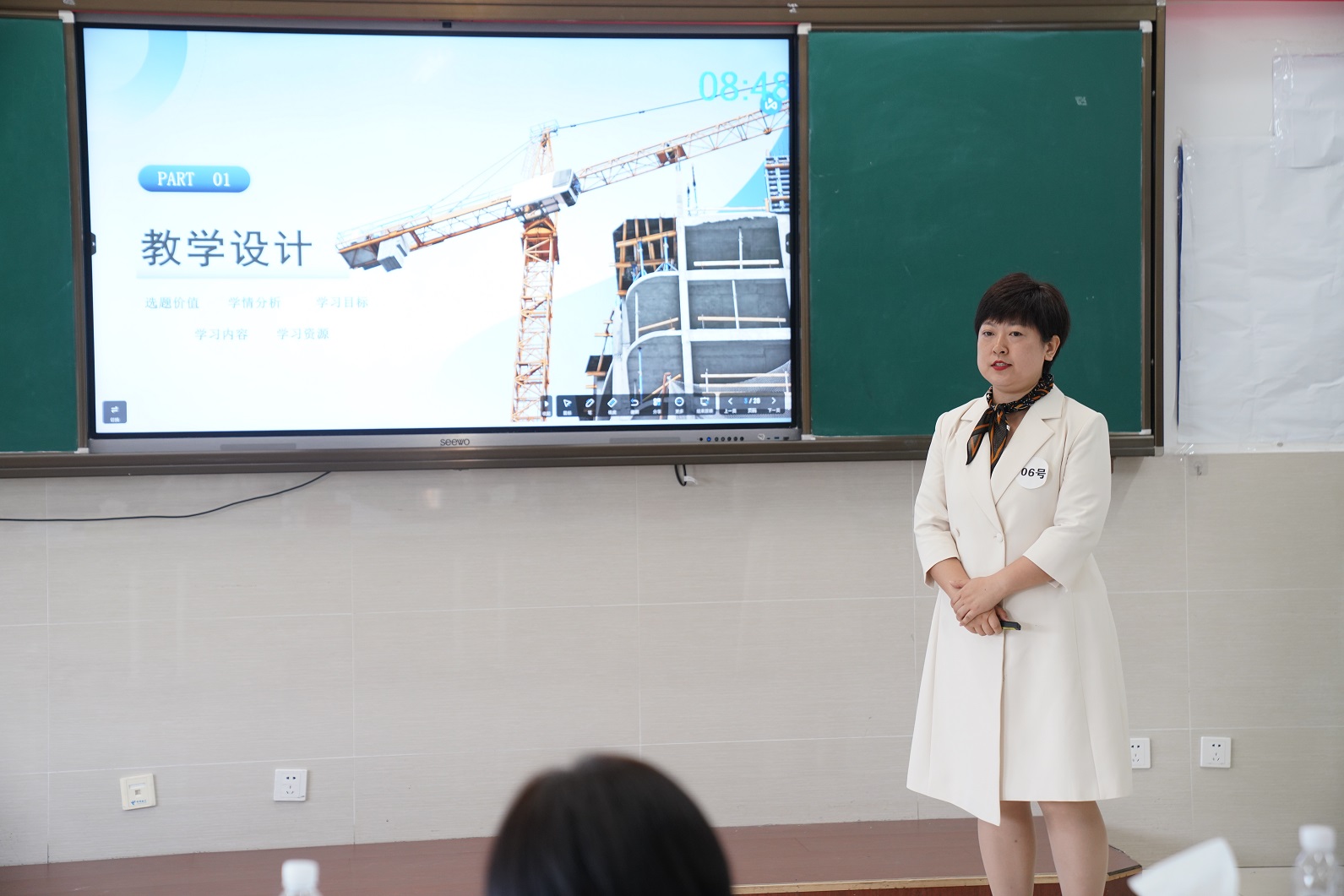 在说课与答辩环节中,参赛教师们从教学依据、教学设计、教学实施、教学评价等方面开展说课,教学内容丰富,教学环节多样,并将思政元素和职业素养有效融入课堂,充分展示了以学生为中心的教学理念、良好的教学水平、娴熟的教学技巧。