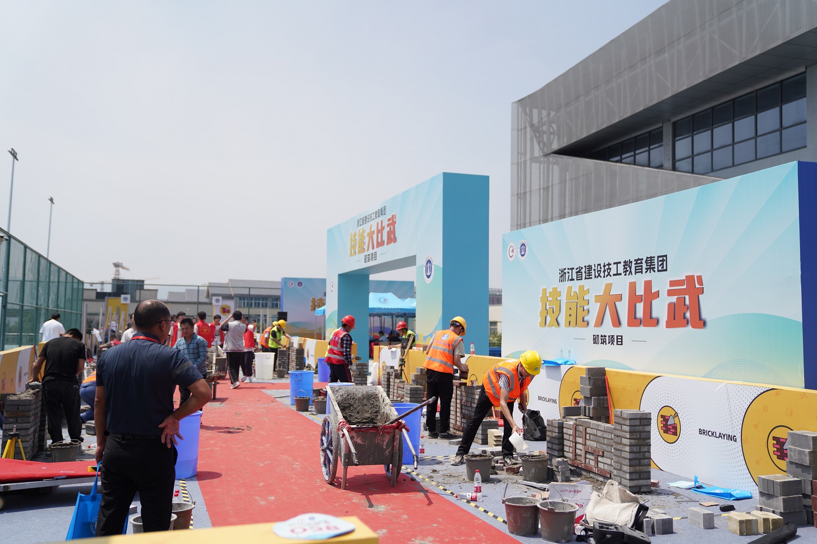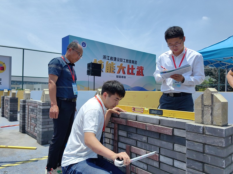 技能是强国之基、立业之本。为弘扬劳动精神、劳模精神、工匠精神,搭建相互交流切磋的舞台,营造集团内比学赶超的浓厚氛围,充分发挥职业技能竞赛在技能人才培养中的引领作用,5月23日,浙江省建设技工教育集团首届技能大比武——砌筑项目技能竞赛在浙江建设技师学院如火如荼的开展。
