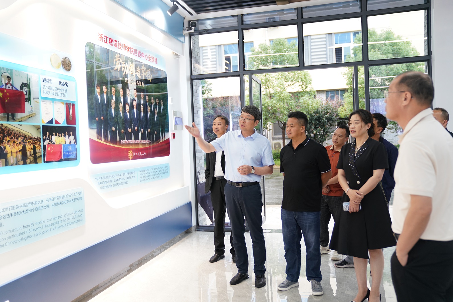 期间,张伟副主席一行还参观了学院世界技能大赛集训基地、数字建造产创中心、扶梯工作站,观摩世赛正选国手训练,详细了解学院特色育人举措。