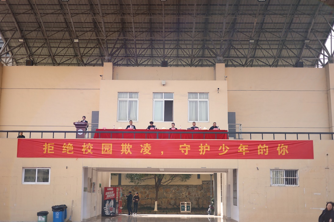 普法大会上,富阳区司法局团委书记董贞峰以《拒绝校园欺凌,守护少年的你》为主题,向学生们介绍了什么是校园欺凌,校园欺凌的常见表现形式、严重危害和具体应对措施及防范校园欺凌的方法,告诫学生们要互相尊重,珍惜友谊,不做受害者,不做欺凌者,不做附和者和旁观者,学会运用法律武器捍卫自己的合法权益。