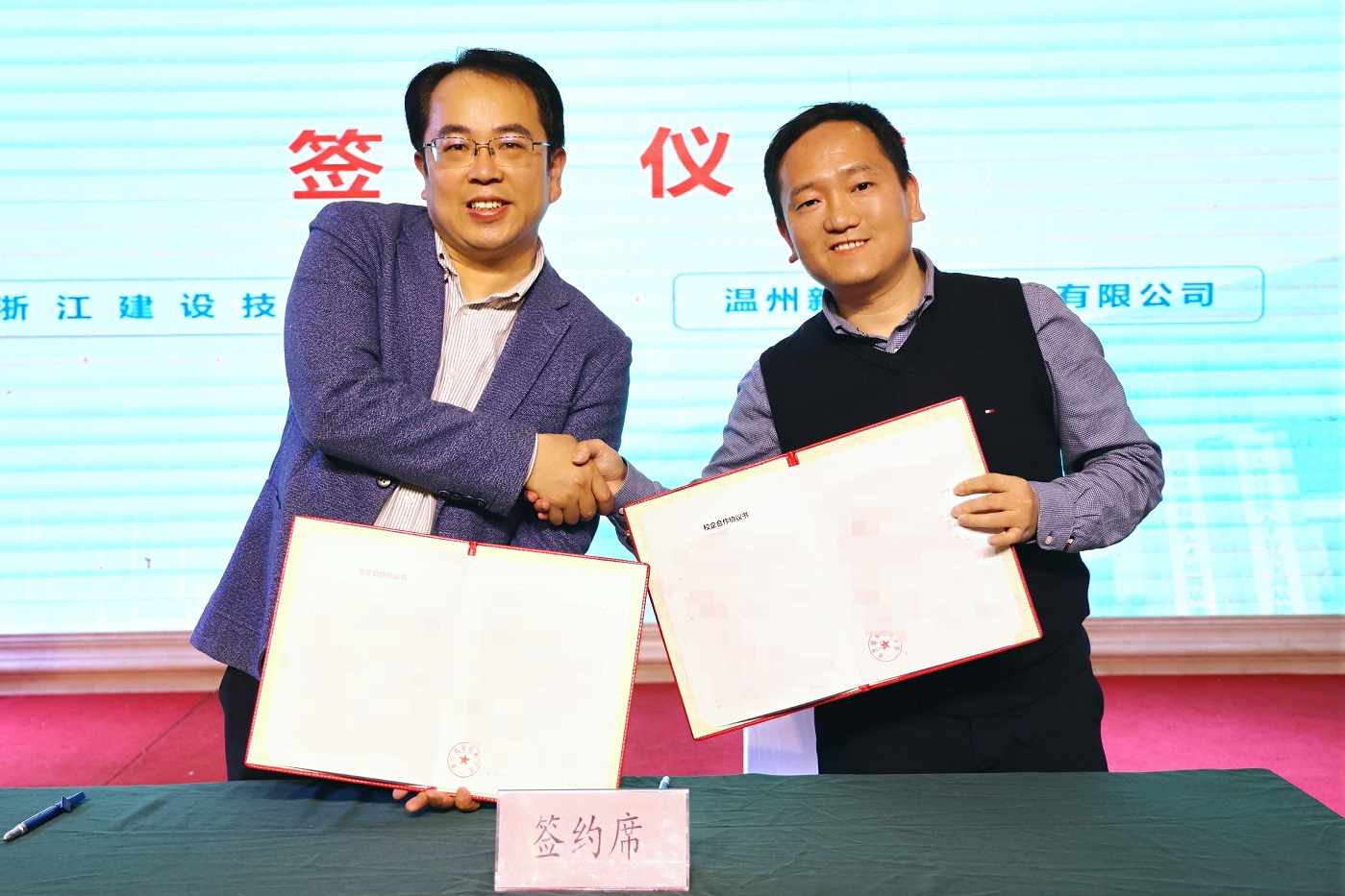 在随后进行的校友企业合作签约中,学院同绍兴沈园堂健康文化传播有限公司、温州法奥电梯有限公司、温州金珂实业有限公司、温州广鑫建设有限公司、温州新立科技工程有限公司、温州亚都广告装饰有限公司、浙江坤荣建筑有限公司等七家校友企业签署了校企合作协议,进一步深化校友企业与母校之间的合作。