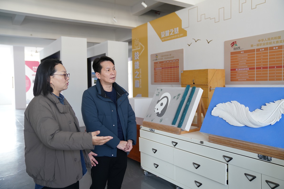 何志敏副校长一行参观了学院世界技能大赛集训基地、数字建造产创中心、精细木工房、扶梯实训室,详细了解学院专业设置、人才培养、校企合作等方面的情况。