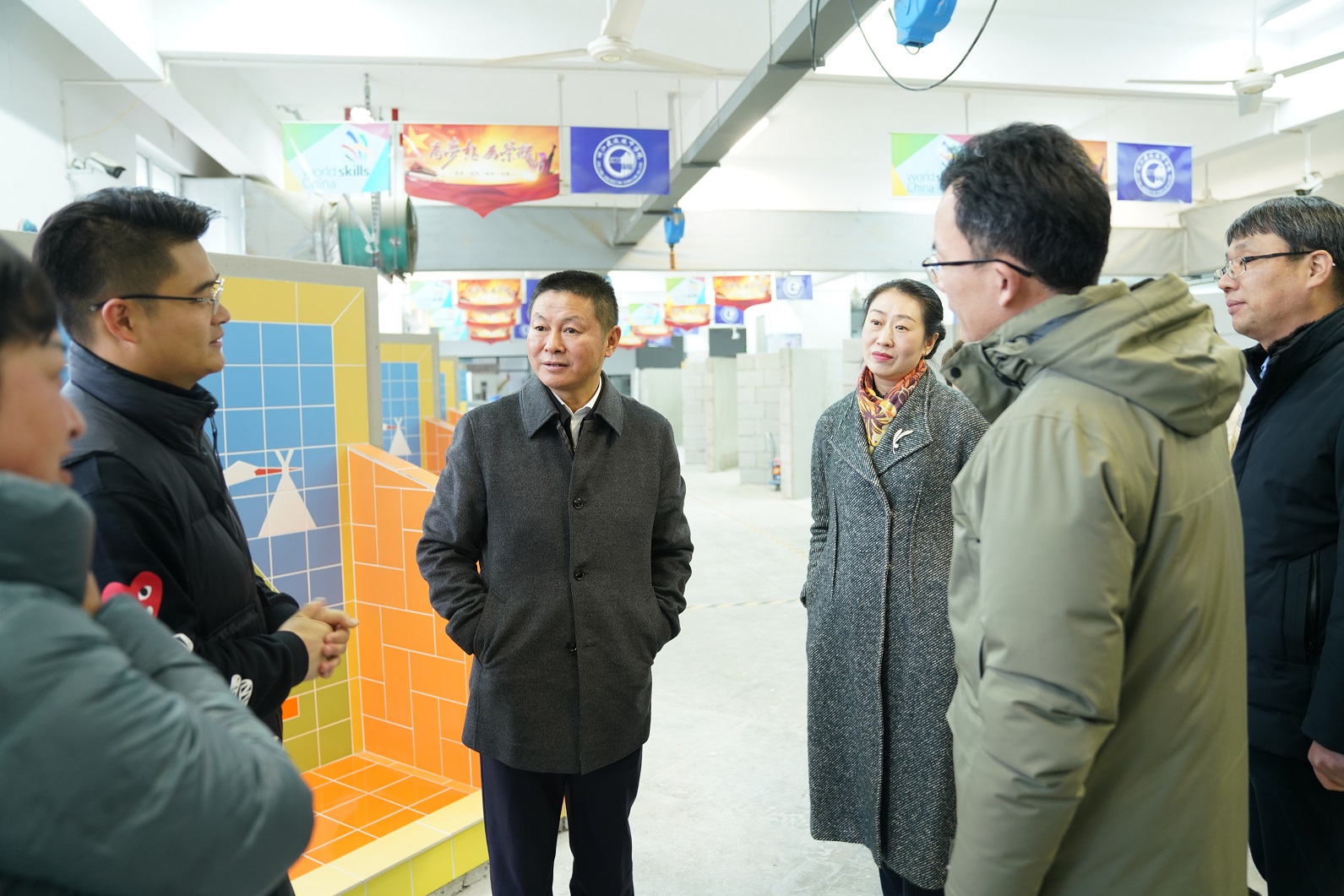12月19日,省人社厅党组成员、副厅长陈中莅临浙江建设技师学院调研技能人才培育工作。省人社厅职业能力建设处处长陈华良、副处长林琳,省技能人才评价管理服务中心主任刘长春,省职业技能教学研究所所长徐晓斐,省人社厅职业能力建设处二级调研员黄晓红、三级主任科员朱司仪,省机电集团(省职教集团)副总经理陈晓、教育事业服务中心副主任(主持工作)张加涨,学院领导班子成员,学院领导钱正海及相关系部负责人、世赛中心教练陪同调研。