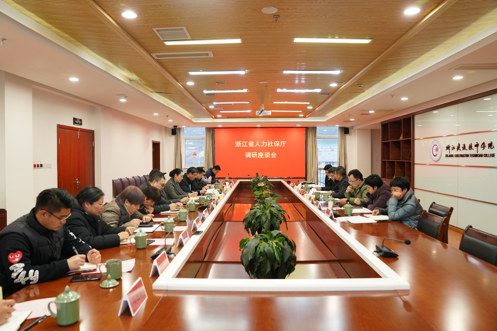 在听取汇报后,陈中副厅长表示,学院师生面貌朝气蓬勃、技能竞赛成绩突出、世赛成果转化多元、国际合作持续深入、师资队伍建设保障有力、办学成果享誉全国,令人振奋,特别是培养的人才就业质量持续向好,毕业生待遇水平不断提高,为共同富裕示范区建设作出了积极贡献,令人欣慰。同时,他希望学院锚定目标,聚焦重点领域,勇于破题攻坚,以一流技师学院建设为抓手,夯实各项办学基础,不断提升办学质量和育人成效,营造人人皆可成才的社会氛围,培养更多高技能人才,赋能经济社会建设,为“两个先行”和高质量发展建设共同富裕示范区作出更大贡献。