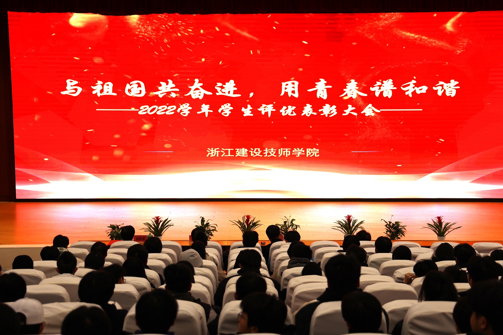 学院副院长黄建蓉首先宣读《关于表彰2022学年“三好学生”“优秀学生干部”“单项积极分子”的决定》《关于表彰2022学年“励志奖学金”“一等奖学金”“三等奖学金”的决定》,她希望受表彰的同学珍惜荣誉,戒骄戒躁,再接再励,再创佳绩;希望全体学生以他们为榜样,立志成才、全面发展,为学院年建设“一流技师学院”作出积极贡献。