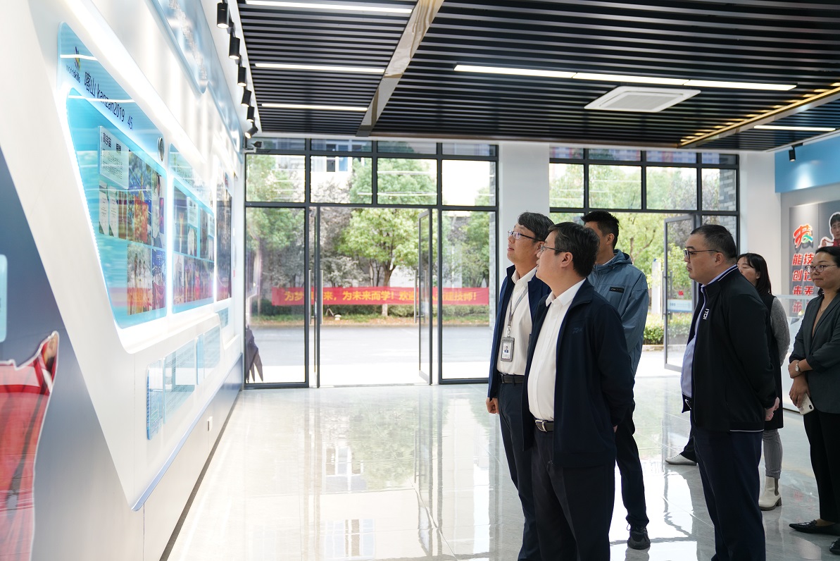 廉俊董事长深入学院世赛集训基地及各专业实训室,观摩选手训练备赛情况,和教练亲切交流,并详细听取了学院党委书记徐永良对学院搬迁过程、竞赛佳绩、专业建设、校企合作及毕业生就业等情况的汇报。