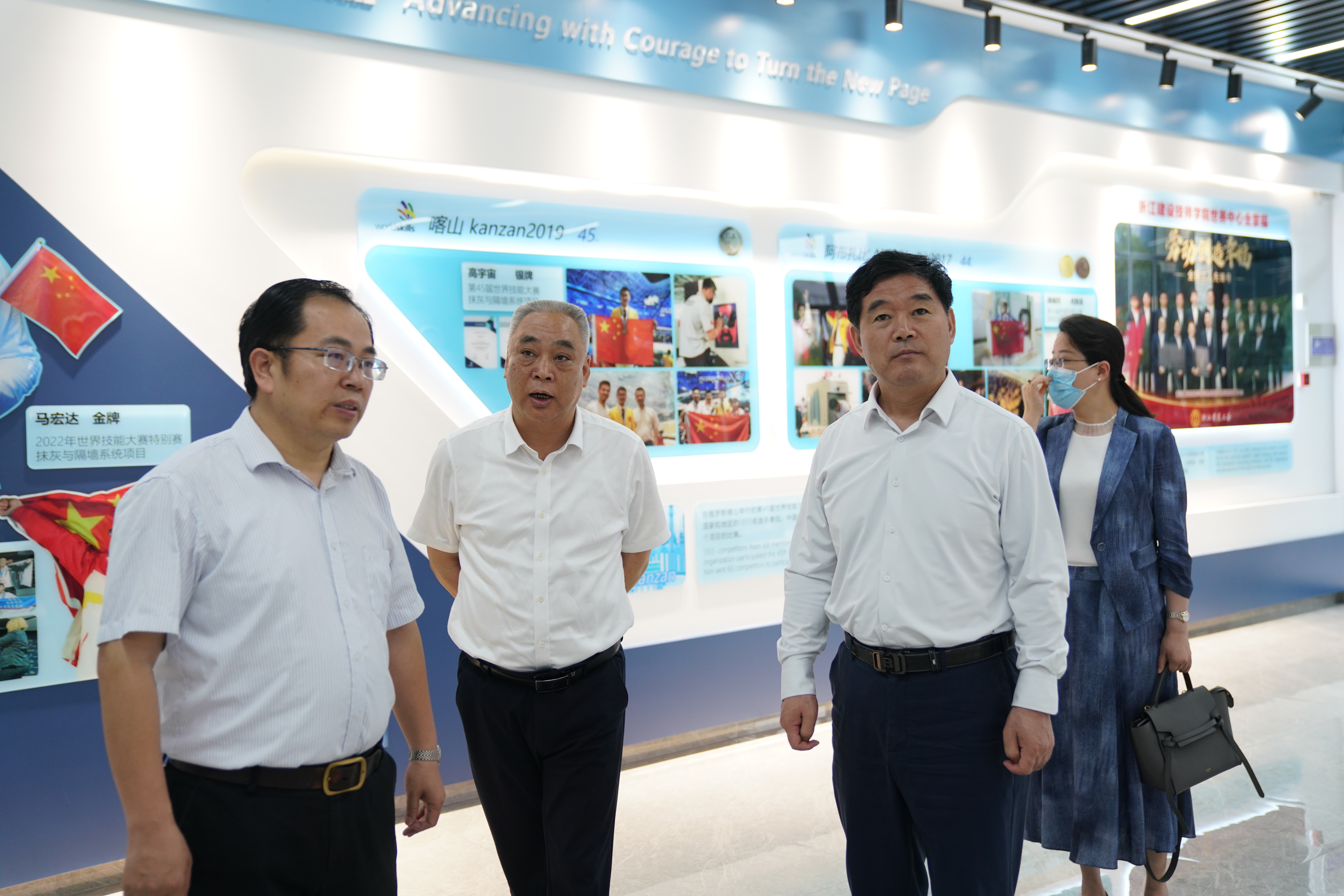 正值中华人民共和国第二届职业技能大赛住房和城乡建设行业选拔赛瓷砖贴面、抹灰与隔墙系统两赛项正在我院进行,在学院党委书记徐永良和世赛中心主任赵宇的领带下,梅向东书记一行观摩了比赛现场,参观了学院的技能人才培育成果展,简要了解了学院的优势世赛项目和近年来取得的办学成果。