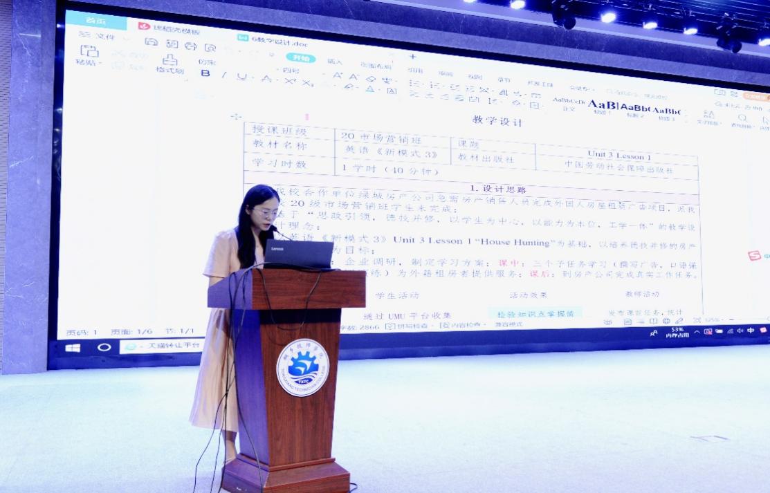 赛后,在全省技工院校英语组年会中,我院教师沈媛媛上台进行了教学设计思路分享。
