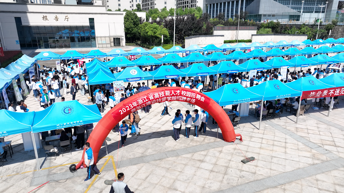 5月25日上午,浙江建设技师学院联合杭州市建筑业管理站在学院举办“扬帆筑梦 遇建未来”2023年浙江省建设行业高技能人才校园招聘会。