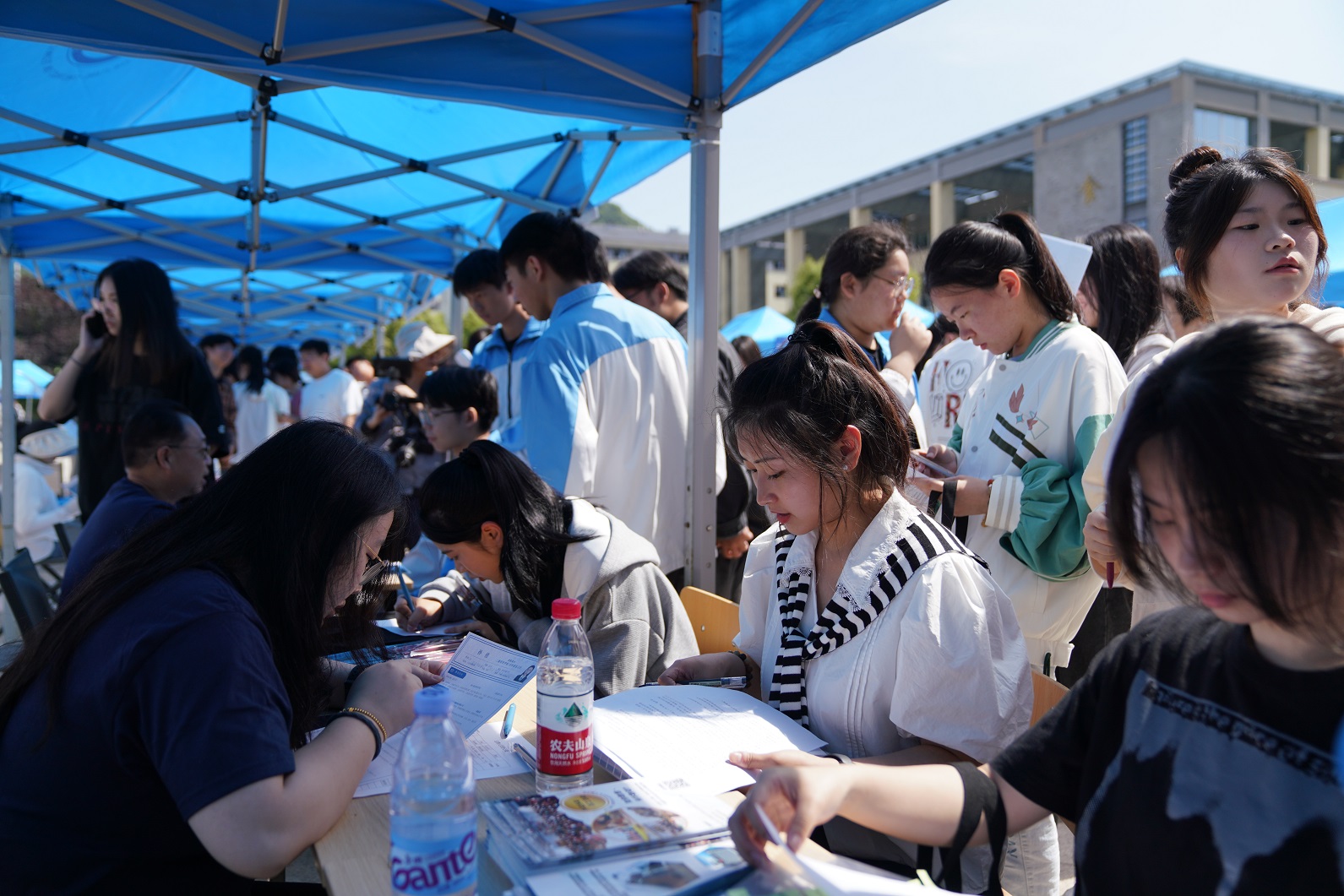 活动现场人头攒动,同学们手持精心准备好的简历,积极与招聘人员交流,主动了解用人单位岗位需求、薪酬待遇、职业发展等情况。除即将进入实习阶段的同学外,部分在校学生也赶来咨询了解就业市场。各展位上,招聘人员“八仙过海,各显神通”,为毕业生讲解着本单位的招聘需求,耐心回答毕业生关注的问题。