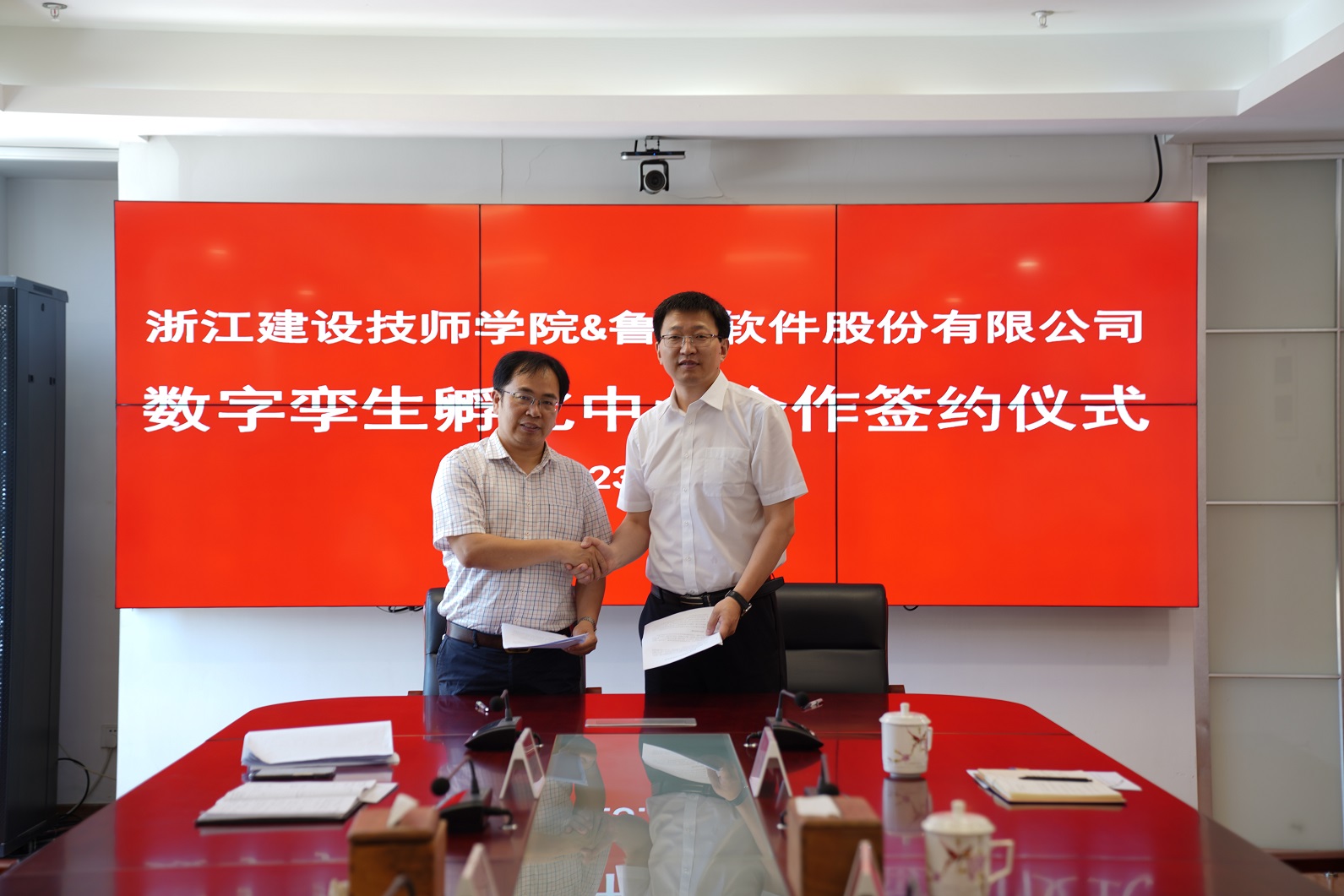 为进一步深化校企合作、产教融合,精准培育人才,5月29日,浙江建设技师学院与鲁班软件股份有限公司举行合作签约仪式,共同启动“数字孪生孵化中心”。鲁班软件股份有限公司总经理王永刚副总经理许燊,数字教育事业部市场总监张洪军及学院院长钱正海,数字建造产业学院院长建工系主任张国华及数字建造产业学院院长助理钱路宁参加签约仪式。