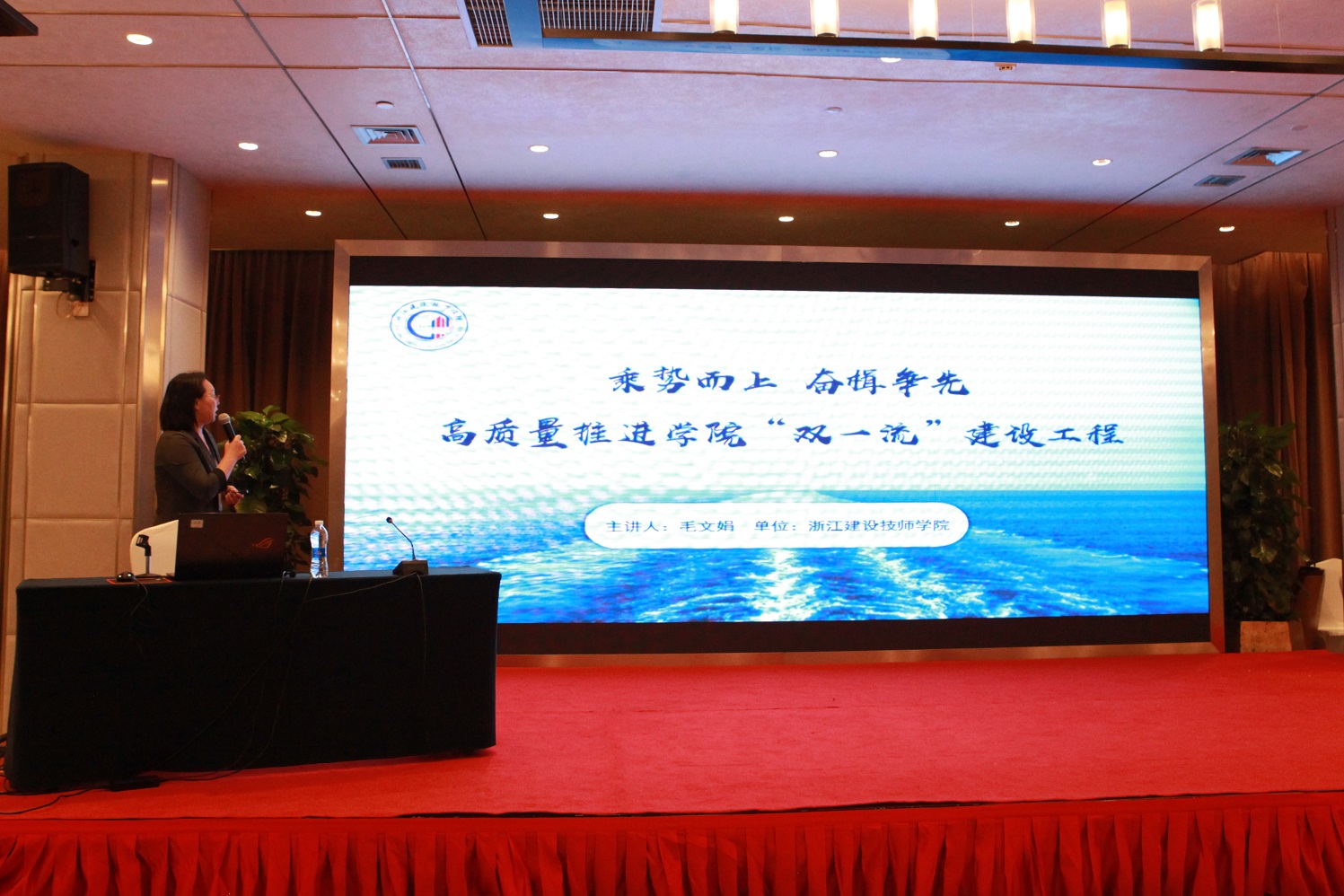 在建设技工教育发展论坛上,学院副院长毛文娟作了《乘势而上 奋楫争先 高质量推进学院“双一流”建设工程》的主题发言。毛院长主要从四个方面分享“双一流”建设对我院内涵式提升、跨越式发展的重要影响以及对技工教育发展的思考与展望。作为本次论坛第一个发言人,毛院长重点聚焦新时代技工教育利好因素、我院的一流技师学院建设成果经验做法及对行业专业发展的思考,观点鲜明、内容丰富,既有理论的高度又十分接地气,获得与会人员的一致好评,赢得了全场热烈的掌声。