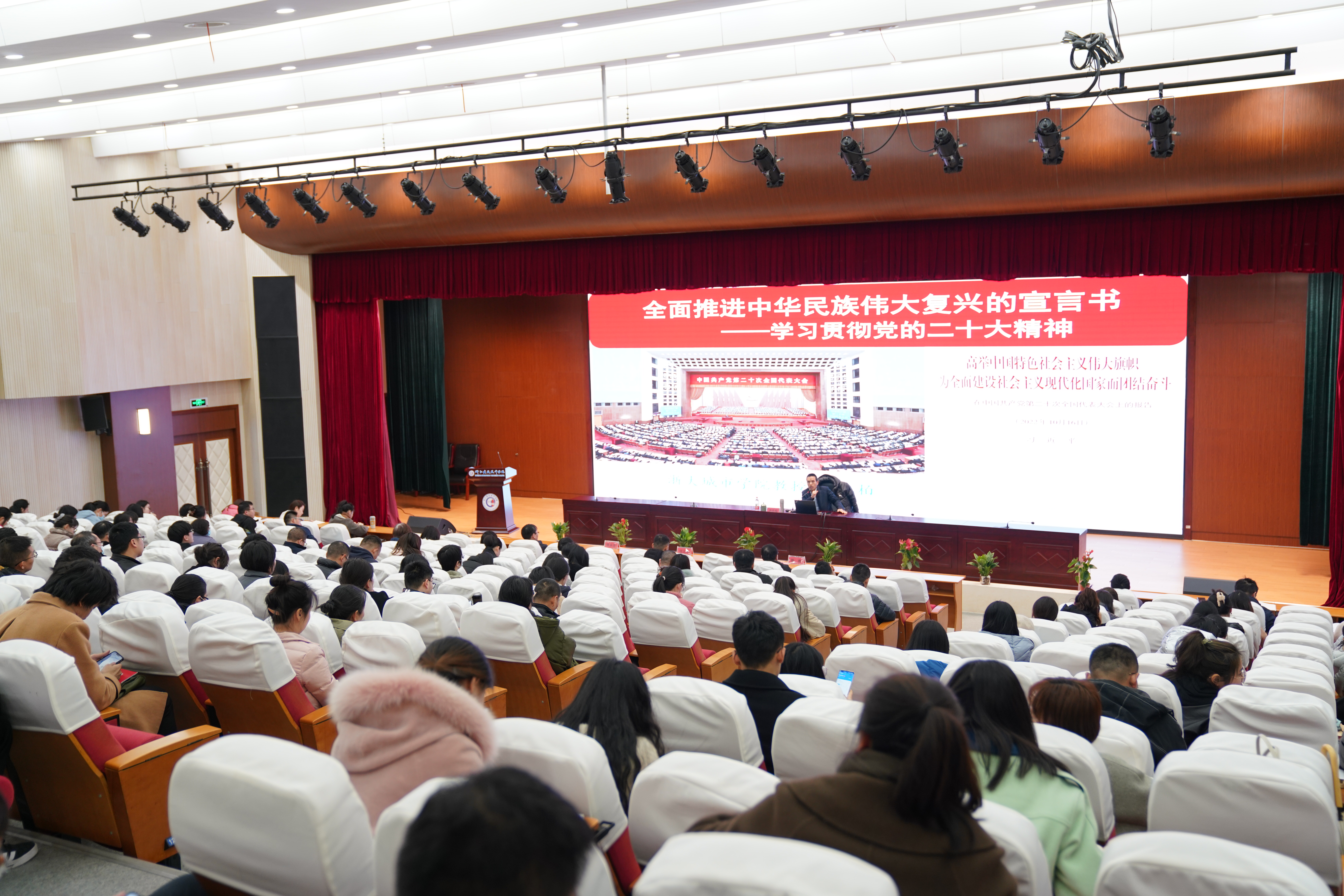 为深入学习宣传贯彻党的二十大精神,切实把广大教职工的思想和行动统一到党的二十大精神上来,2月24日下午,学院特邀中央党校党史党建博士浙大城市学院教授肖纯柏来校作党的二十大精神宣讲报告,学院党委书记徐永良主持会议,全体教职工参加培训。