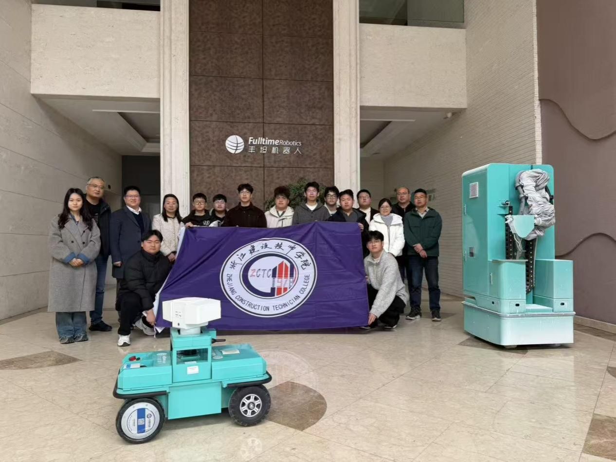 为精准对接建筑行业智能化发展需求,拓宽学生专业视野,提升人才培养与产业发展的适配度,3月20日,毛文娟院长带队走访杭州丰坦机器人有限公司,建筑工程系21级技师研修班学生同行参与,通过参观学习与交流研讨,实地探寻建筑机器人前沿技术与行业应用新趋势。